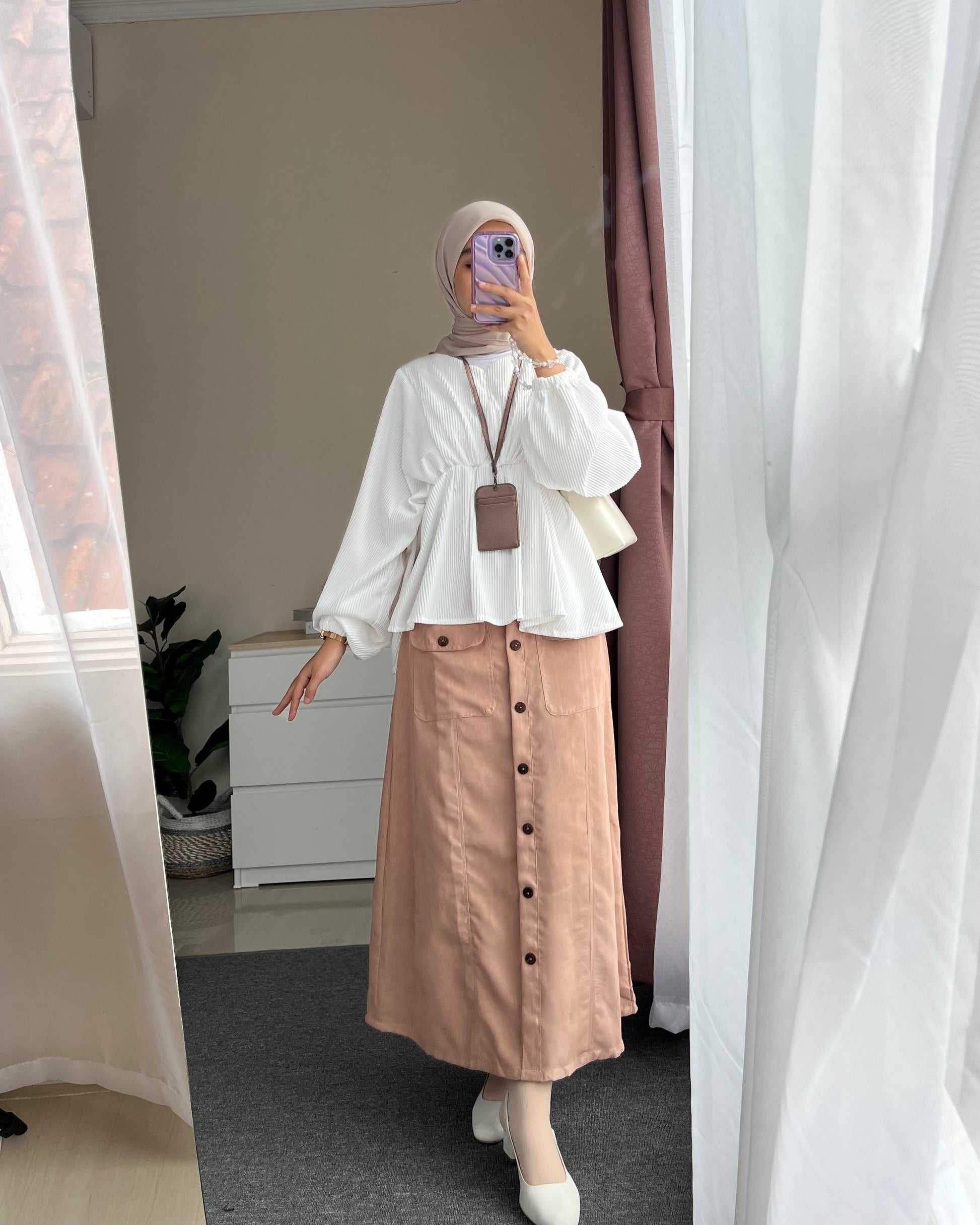Syamaita Original Heira Pleats Blouse Busui Dan Wudhu Friendly Baju Wanita Muslim Atasan Basic Dewasa Santai