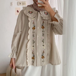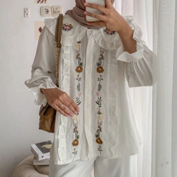 Material: premium linen, nyaman digunakan sepanjang hari, sangat ringan, terdapat kancing di bagian leher belakang, lengan karet wudhu friendly, aman tidak menerawang