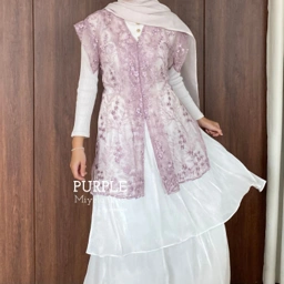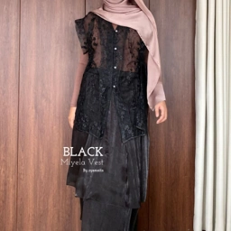 Miyela Vest - New Colls Material : shimmering brocade premium material shimmer anti lebay dan ngga bikin gatel di kulit, pattern brocade elegant yang lagi trendy bikin eyecatching terdapat kancing dibagian depan vest, dan tali adjustable disamping kiri dan kanan. Detail size: FREESize Lebar Vest bisa digunakan maximal bb 100kg Lingkar dada 106cm Lingkar ketiak 48cm Panjang Vest 75cm